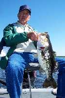By golly, that's just what we did -- and, Jack even let Happ catch a couple, too. Jack had the first bass, the largest bass and the most bass. I don't think it could have worked out any better. In this case, we went with shiners and a 'magic tree' we keep for just such special occassions. Two days earlier we put in our reservation for a big school of bass, plus a couple of giants mixed in (you have to do that early to be sure you get your fish!). Sure enough, they were there, waiting on us to teach those shiners how to swim. Jack got a lot of bass, as well as two of the biggies. Happ mostly watched Jack during the day. But, towards the end, Happ put his two cents woth in with some four and five lbs. brusiers.