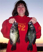 Old good friend, Walt Hoover, made a change of pace when he booked this trip with us. In all the past trips, Walt has wanted to go after bass. This time, he wanted to do something different and try for crappie. And, instead of bring some smelly, grizzled old fisherman with him as a partner, Walt showed up with a beautiful, vivacious young lady, Ms. Lynne Ramcharon. As it turned out, Lynne was a pretty darn good fisher-person, too!